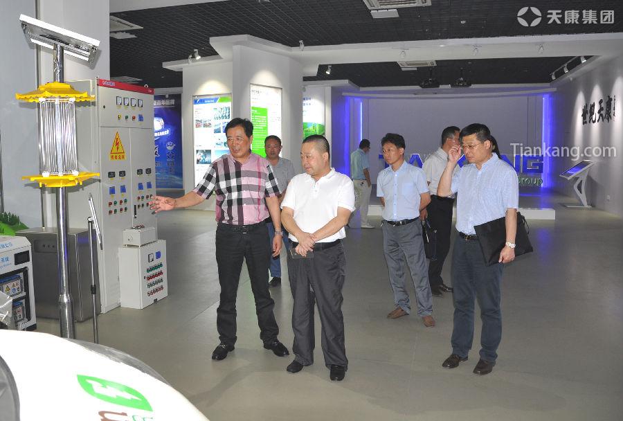 在集團展示廳介紹鋰電池、新能源殺蟲燈、植保無人機及純電動車等產(chǎn)品的相關情況。
