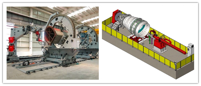 采用自行設計大型擴展軸,結(jié)合六軸機器人最大可支持12軸聯(lián)動,實現(xiàn)大范圍自動焊接,主要應用于工程機械、農(nóng)用機械、煤機、航空領域。